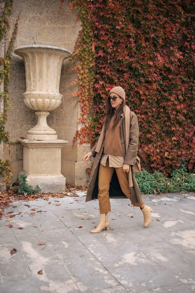 • jeans camel en coton bio (options similaires éco ici, ici & ici)